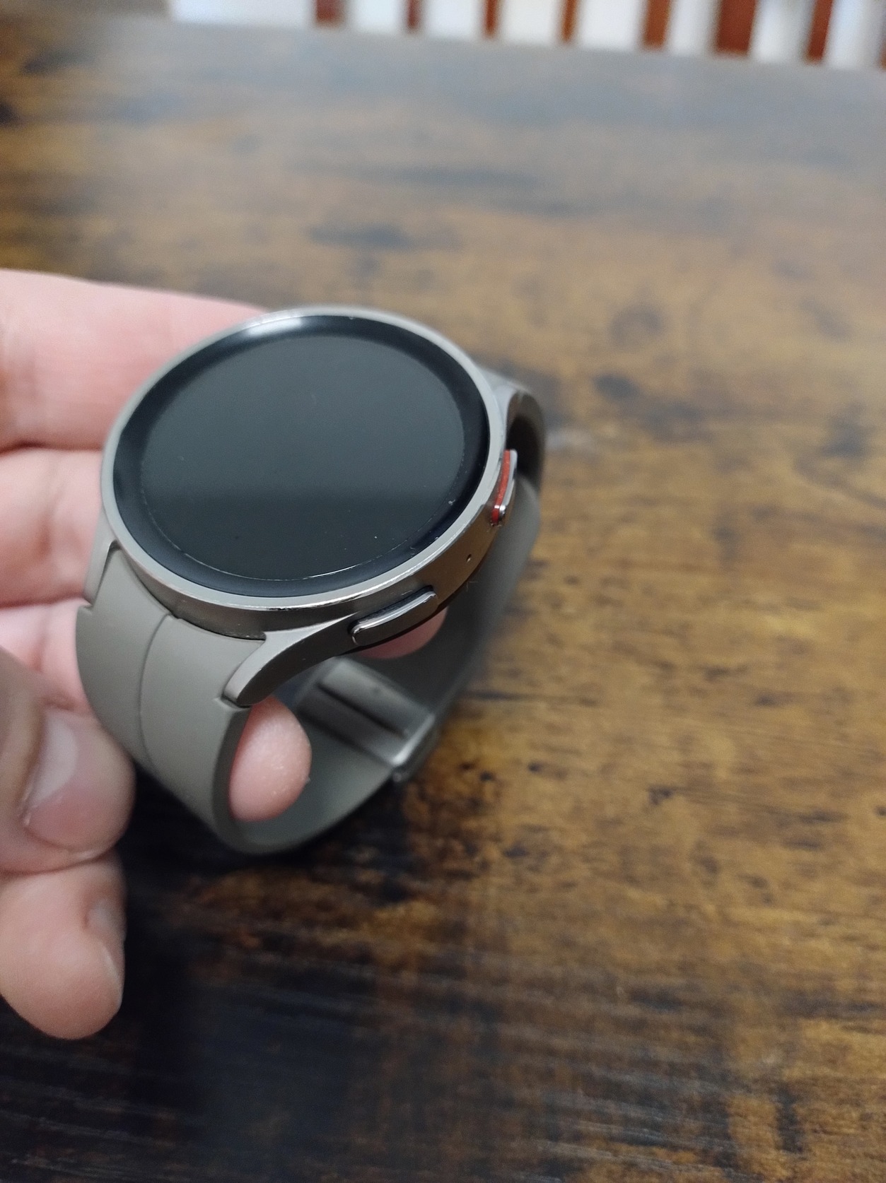 Eladó egy titánszürke Samsung Galaxy Watch 5 Pro okosóra (Bluetooth verzió). Ez az a modell, amit nem kell minden este tölteni.