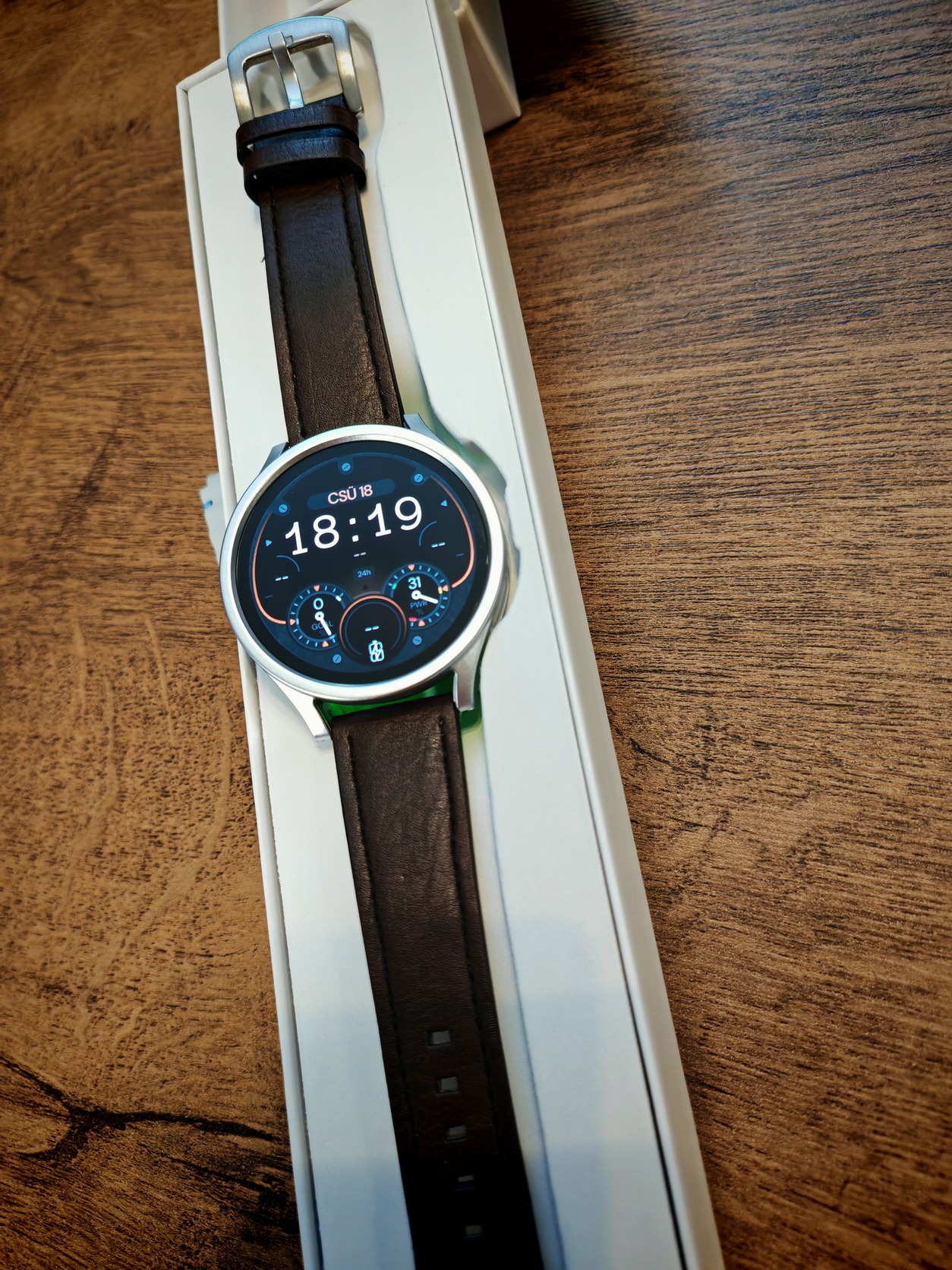 Saját dobozával, töltővel. A gyári szíjja nem volt használva, a képen látható tok és bőr szíj ajándékban jár hozzá.