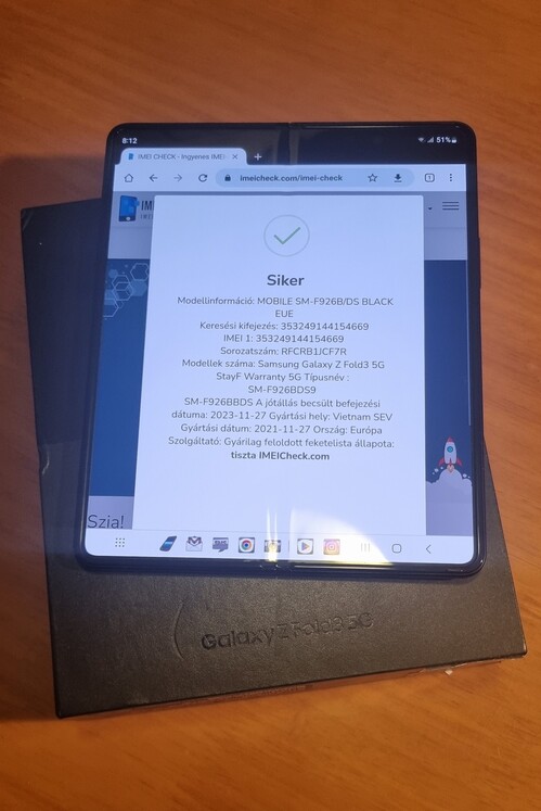 Papírok nélküli telefon, IMEI alapján lekérdezve.