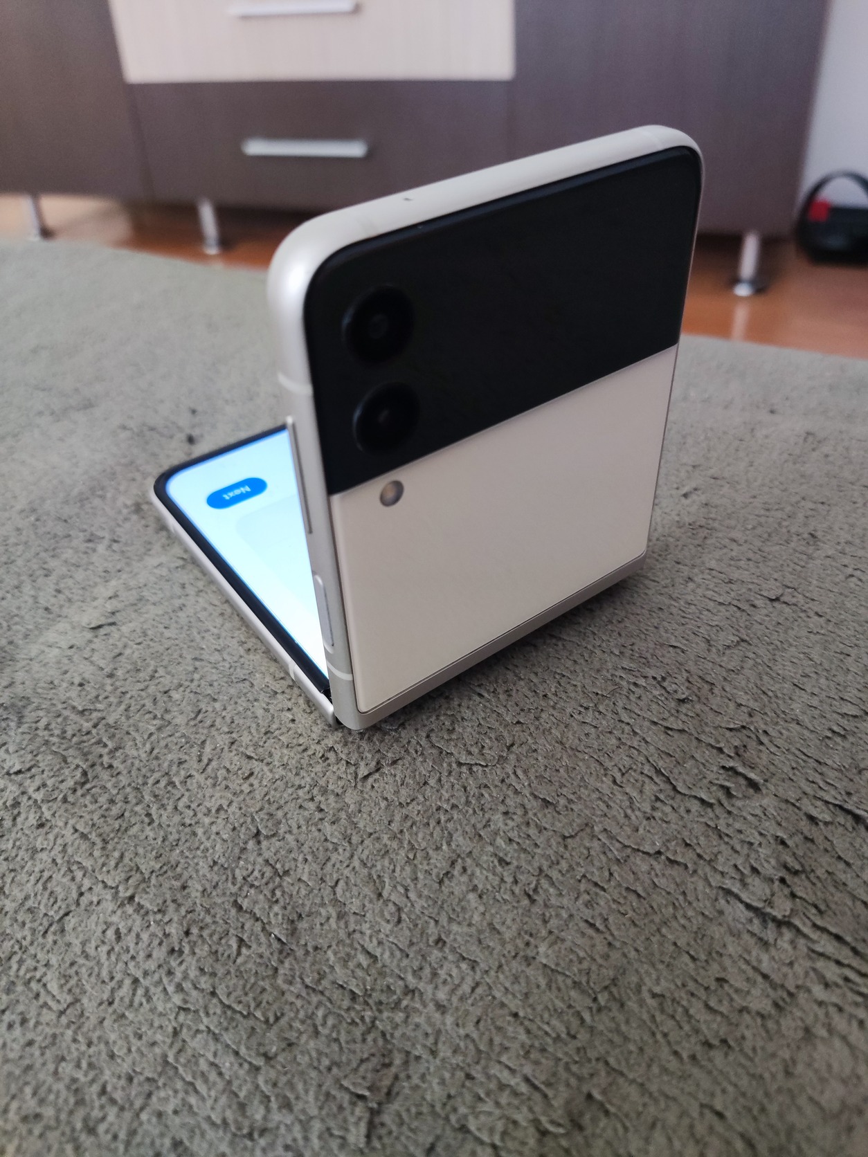 Eladó használt, kártyafüggetlen Samsung Galaxy Z Flip 3 5G. Hibátlanul működik. Gyári fólia található rajta. 2 oldalt a hajlatnál a fólia felpúposodott, azonban ez bekapcsolt állapotban nem látszódik. A telefon sérülés és karc mentes. A képen látható állapotban eladó.