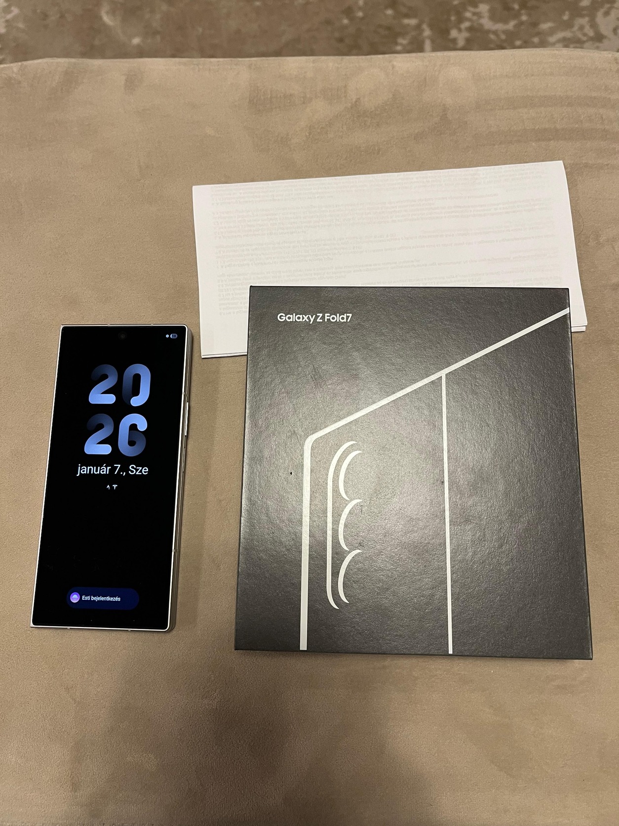 Eladóvá vált Samsung Experinece Store-ban vásárolt készülékem(2025.10.10), a képen látható állapotban minden gyári tartozékával, + egy ajándék spigen tok. Külső kijelzőn újkora óta fólia van. A készülék mind a négy felső sarka, nagyon minimálisan de sérült.