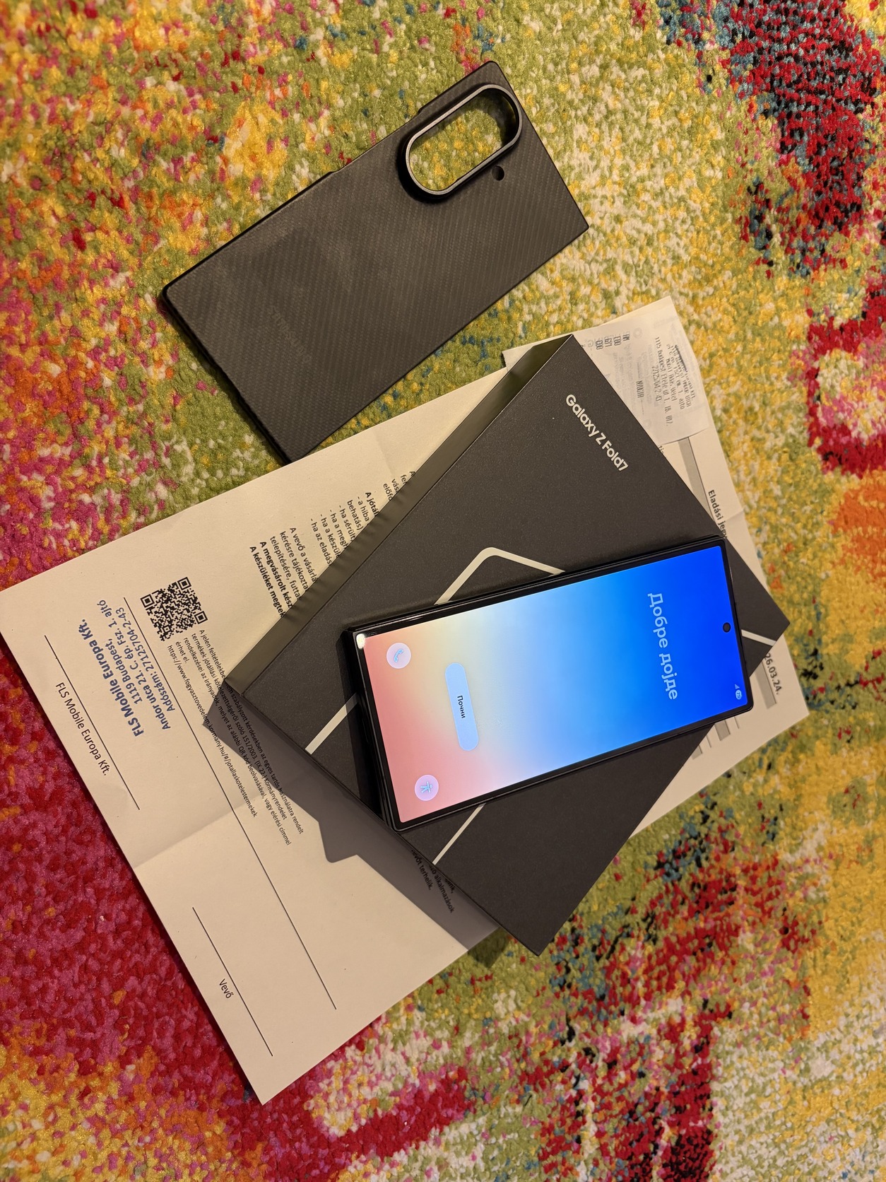 Külső kijelzőn van egy hajszál karc , fóliával eltakarható, ezt felül hibátlan , gyári Samsung Carbon tokkal , dobozában , számlával, garanciával !