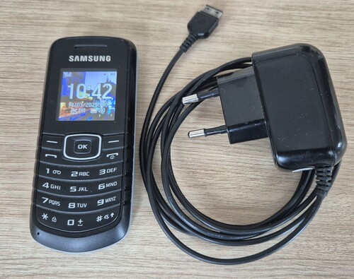 Eladó a képeken látható Samsung GT-E1080W, hagyományos, nyomógombos mobiltelefon.