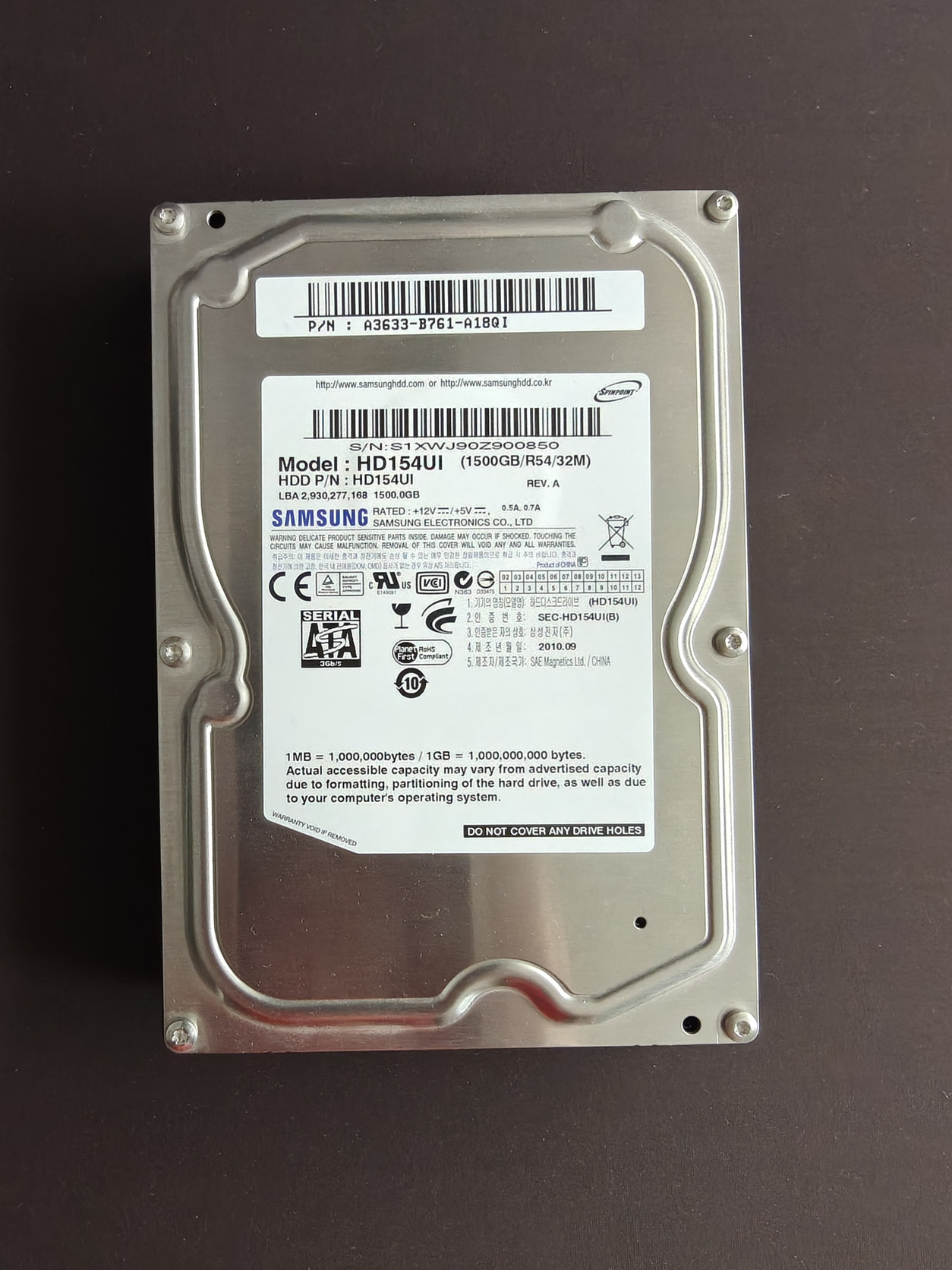 Eladó egy Samsung HD154UI 3,5" 1,5TB belső merevlemez. Külsőre ép, a csatlakozók is, és a belseje is elméletben hibátlan a Smart adatok alapján (link lent). A HDD formázott, teljesen üres. Ismert hibája nincs, furcsa hangot, zörgést és egyéb rendellenességet nem tapasztaltam