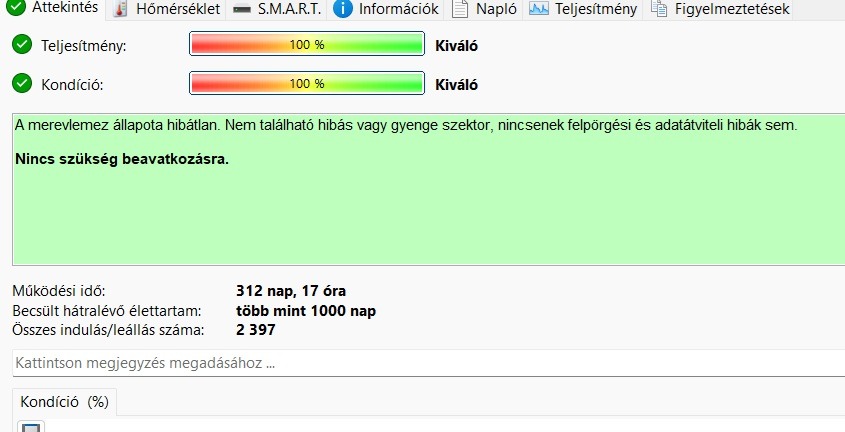 Eladó egy hibátlan műszaki és esztétikai állapotú Samsung HM321HI 320GB 2.5 col winchester, 100%-os. HDSentinel kép csatolva.