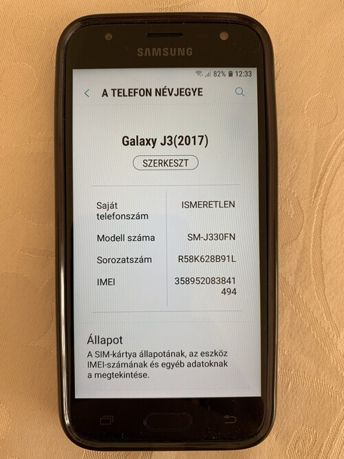 Eladó a képeken látható Samsung J3 okostelefon, gyári töltőjével és fekete tokkal. A készülék sérülésmentes, nagyon szép állapotban van.