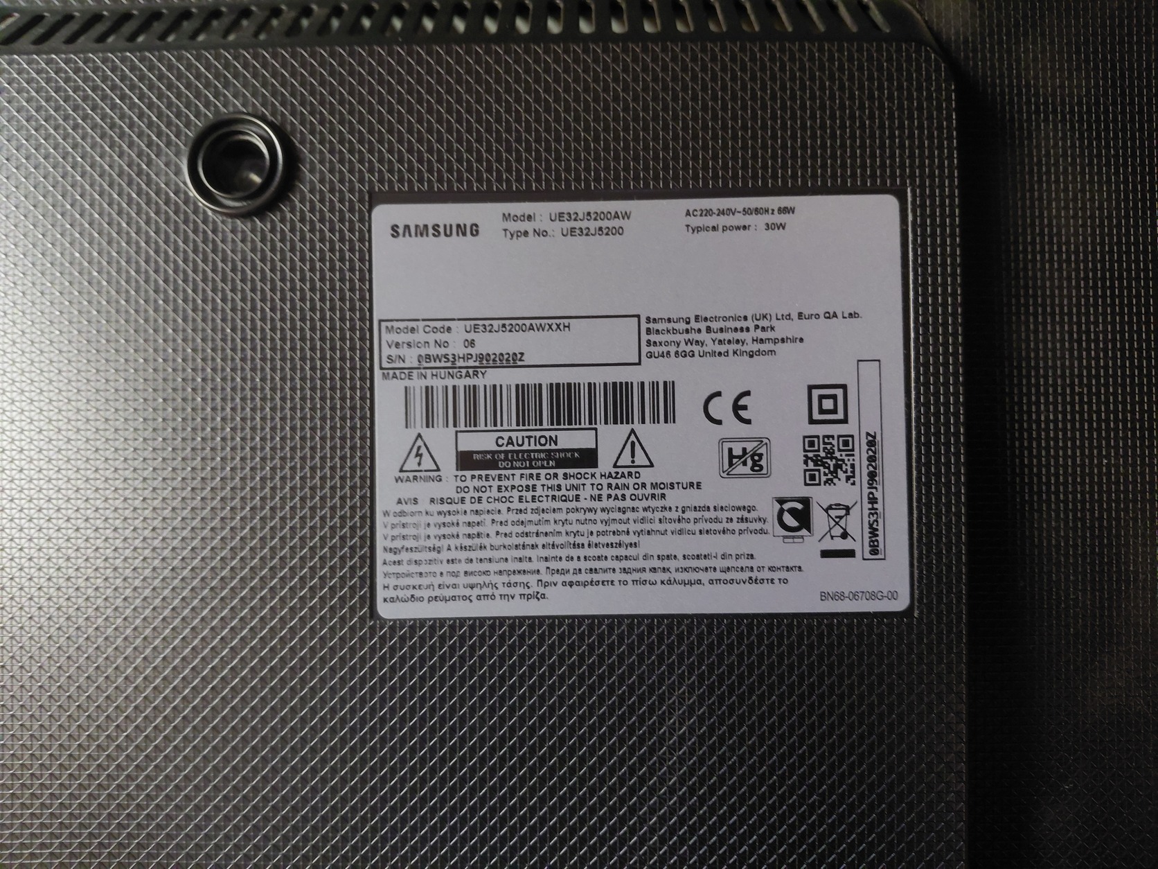 Eladó egy 80 cm képátmerőjű Samsung UE32J5200AW okos tv távkapcsolóval és hálózati tápegységgel.
