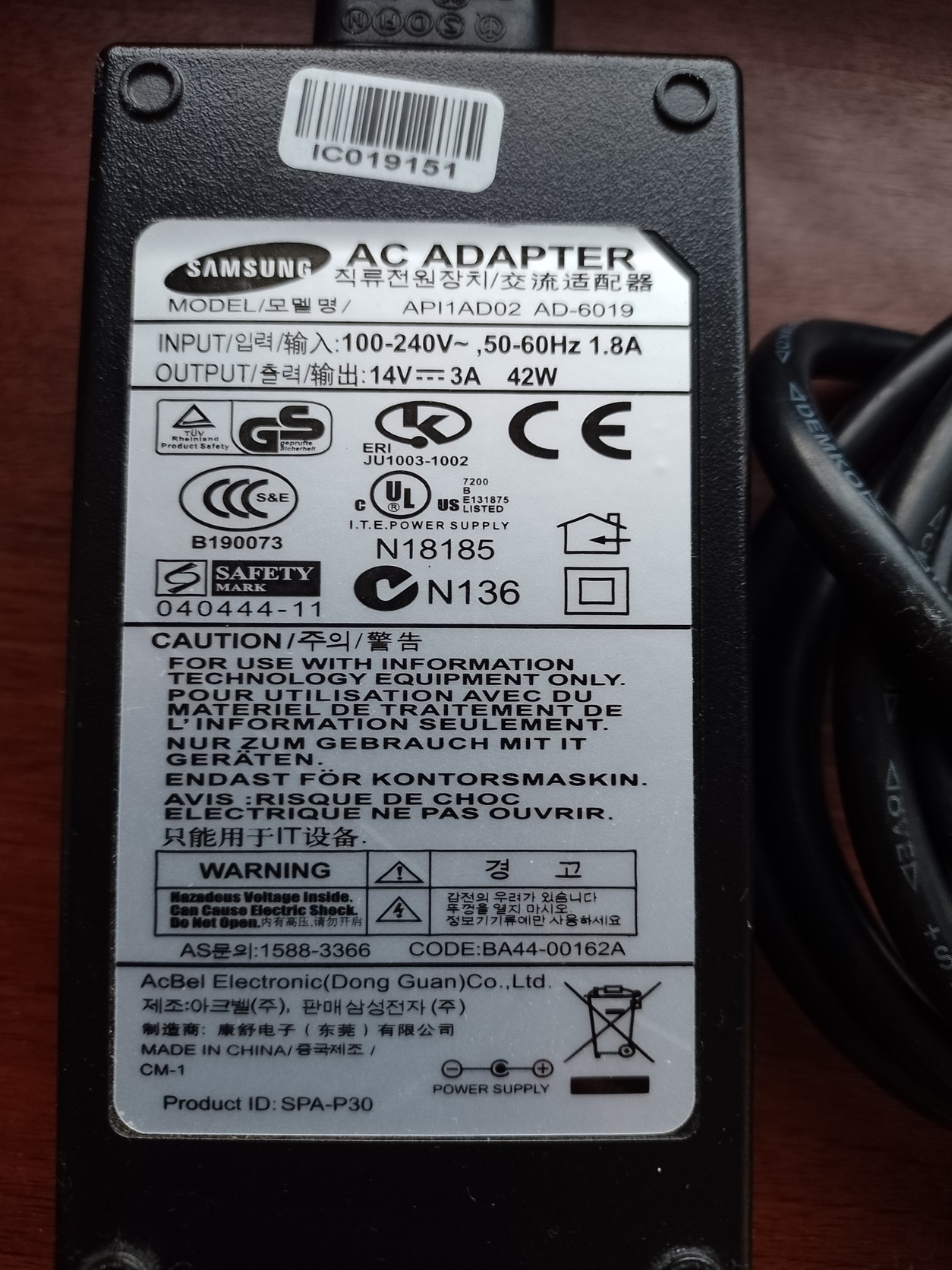 Samsung monitor adapter 14 volt
