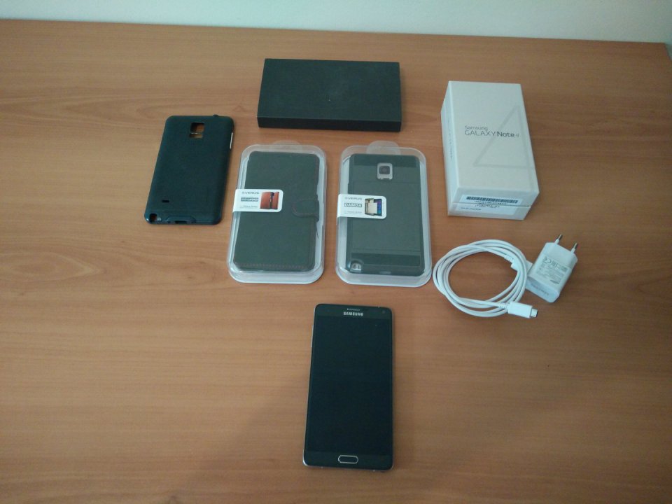 Eladó egy Samsung Galaxy Note 4, az Exynos processzorral kapható változat. A készülék gyárilag kártyafüggetlen-> pontos típus: N910C . Magyarországi, minden számlával papírjával. Szép állapotnak örvend, egyedül a kijelző feletti fém keret festése van megkopva pár helyen, apróság, nem is igazán szembeötlő, de a korrektség miatt természetesen fel kel ltüntetnem:) Ettől eltekintve teljesen makulátlan. A készülékhez ajándékba adok 2db prémium minőségű VERUS tokot melynek darabja 10.000Ft volt, valamint egy olcsóbb árfekvésű gumirozott tokot, illetve egy extra erős katonai tokot amely fémből készült és egy bőrös naptáros tokot. A tokok ára minimum 35.000Ft. A kihajtható VERUS bőr tokkal lett használva és a készülék kezdetektől fogva képernyőfóliával van ellátva.+1 eredeti Samsung akkumulátor.