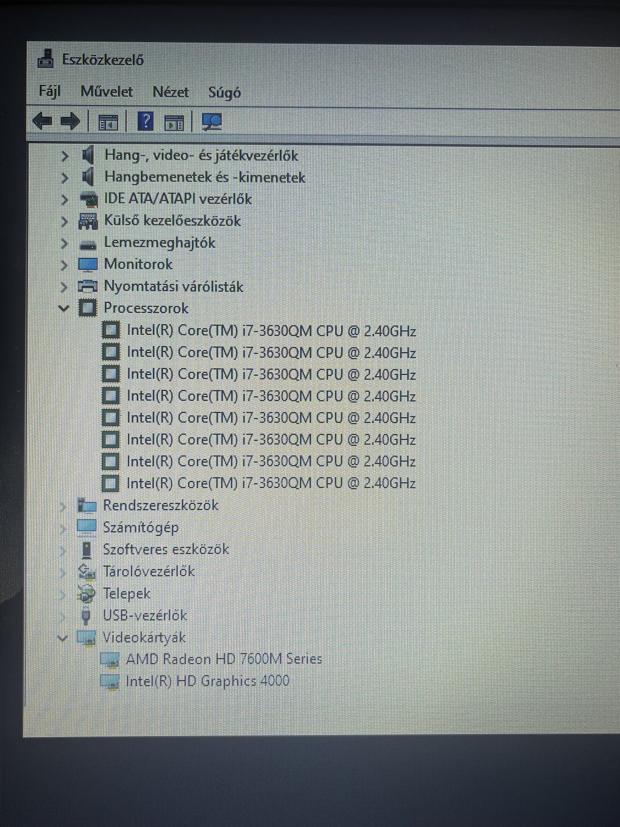 Processzor: Intel Core i7-3630QM (4 mag / 8 szál 2.4Ghz Turbó 3.4Ghz, valódi erőgép)