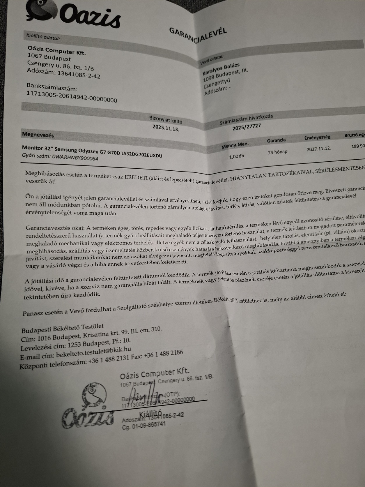 Eladóvá vált 2025 novemberèben újonnan vásárolt monitorom. Tökéletesen működik,mindene hibátlan állapotban van,garis mint ahogy a képen lévő gari papíron látszik 2027 novemberèig,doboza is megvan a benne lévő papírokkal!