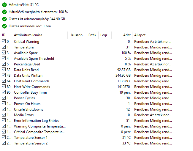 Maximális SSD írási sebesség: 1100 MB/s