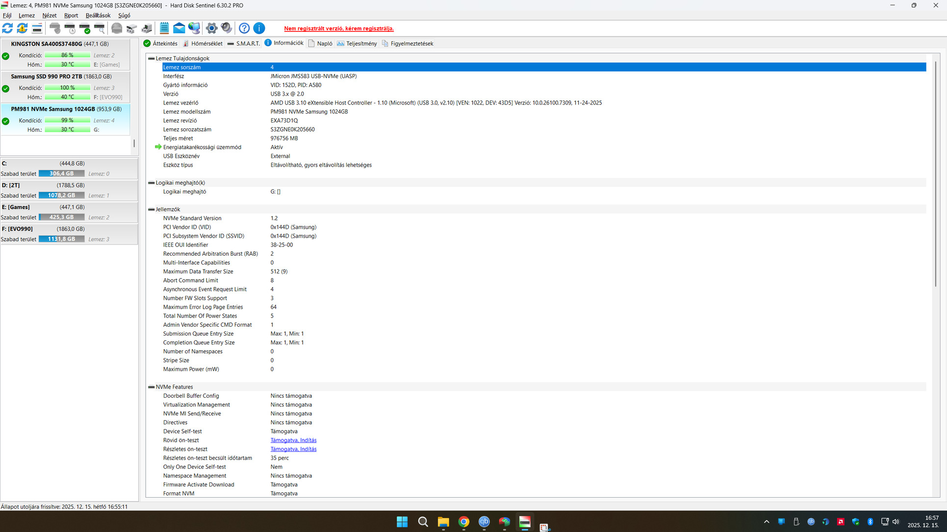 Eladó a képeken látható állapotban egy Samsung PM981 NVMe 1TB.