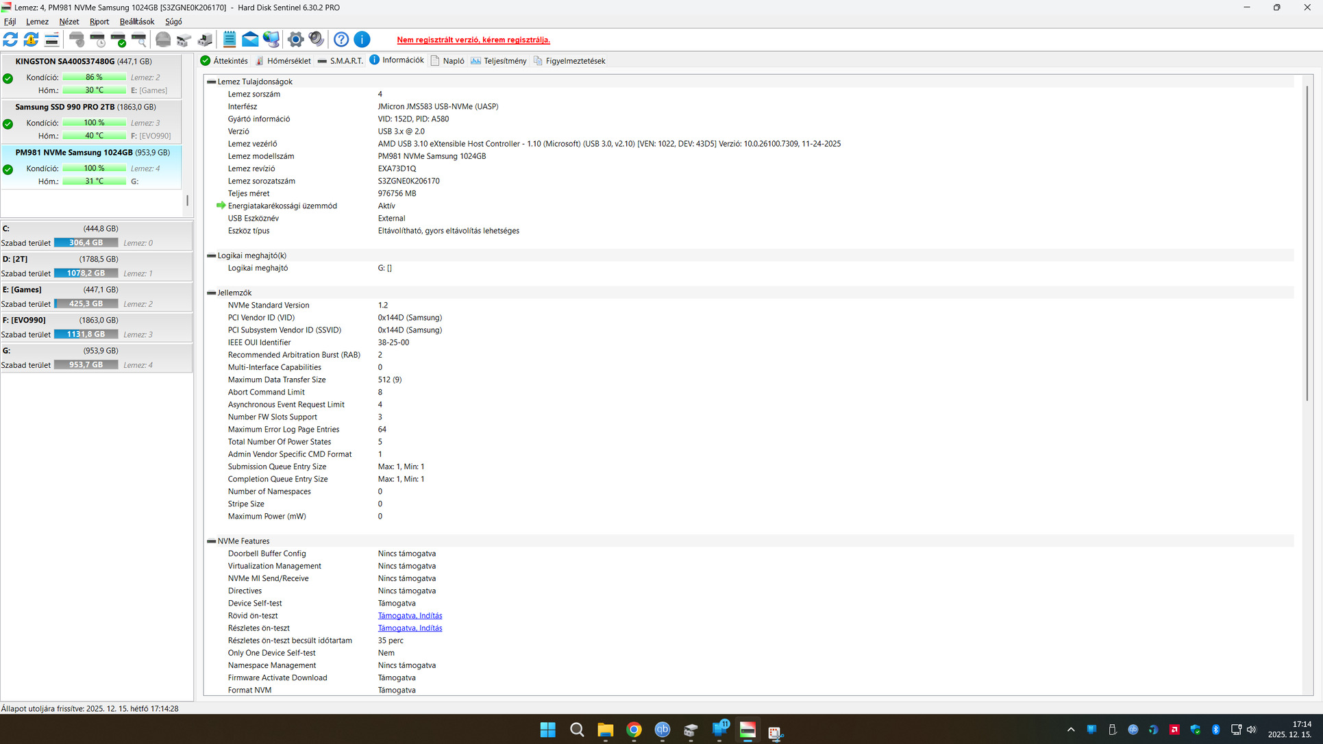 Eladó a képeken látható állapotban egy Samsung PM981 NVMe 1TB.