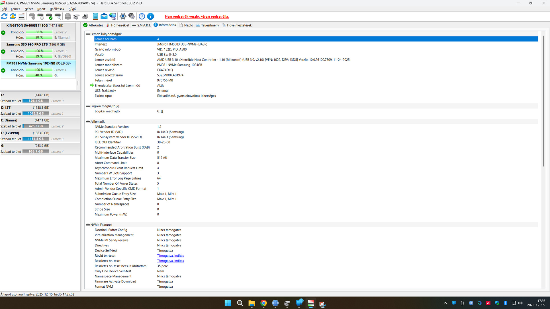 Eladó a képeken látható állapotban egy Samsung PM981 NVMe 1TB.