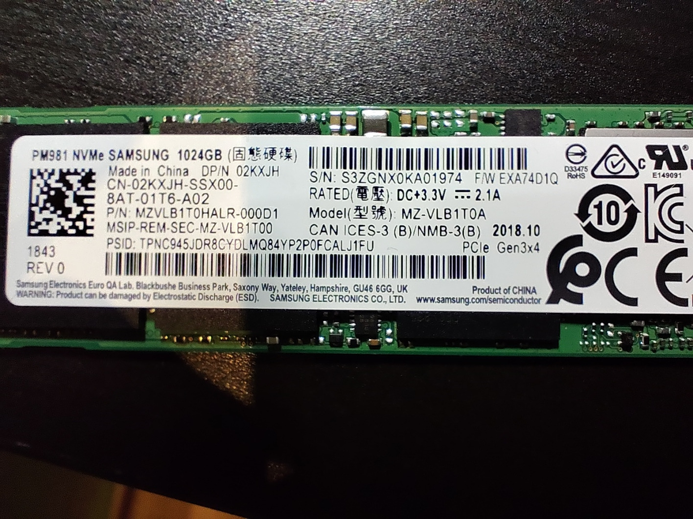 Samsung PM981 NVMe 1TB