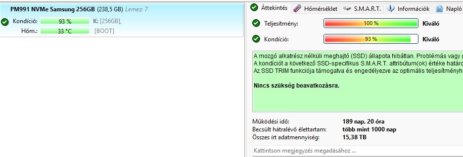 SAMSUNG PM991 256GB NVME SSD 93%