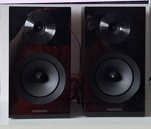 Eredetileg egy Samsung MM-E330D Mini Hifi-hez voltak. A Hifi tönkrement a hangfalak megmaradtak. A Samsung szerint ezek párosíthatók bizonyos Samsunk házimozi rendszerekhez is. Hibátlan működés 2x35 W. Két utas hangfalak, eredeti Samsung csatlakozókkal. Kimondottan jó állapotban vannak.