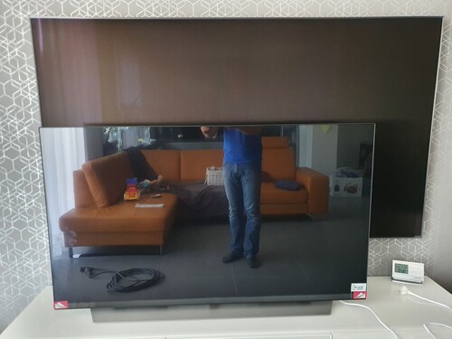 A képen egy LG C1 oleddel pózol, csak hogy lehessen látni, mennyire brutál a tükröződést csökkentő réteg minősége.