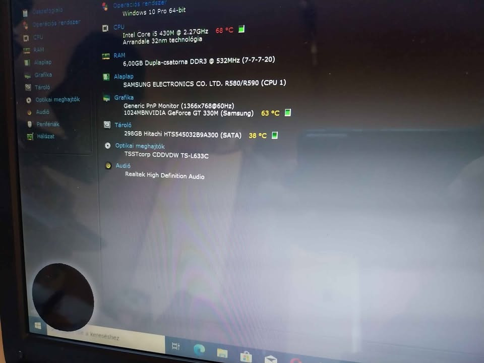 kijelző bal alsó sarkában fekete folt tapipad bal gombja nehézkes, egérrel működik, adom hozzá, csepeli tesztelés és átvétel 06309494425
