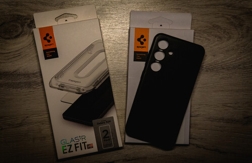 UI: Jár mellé egy Spigen tok, illetve egy fel nem helyezett Spigen üvegfólia.
