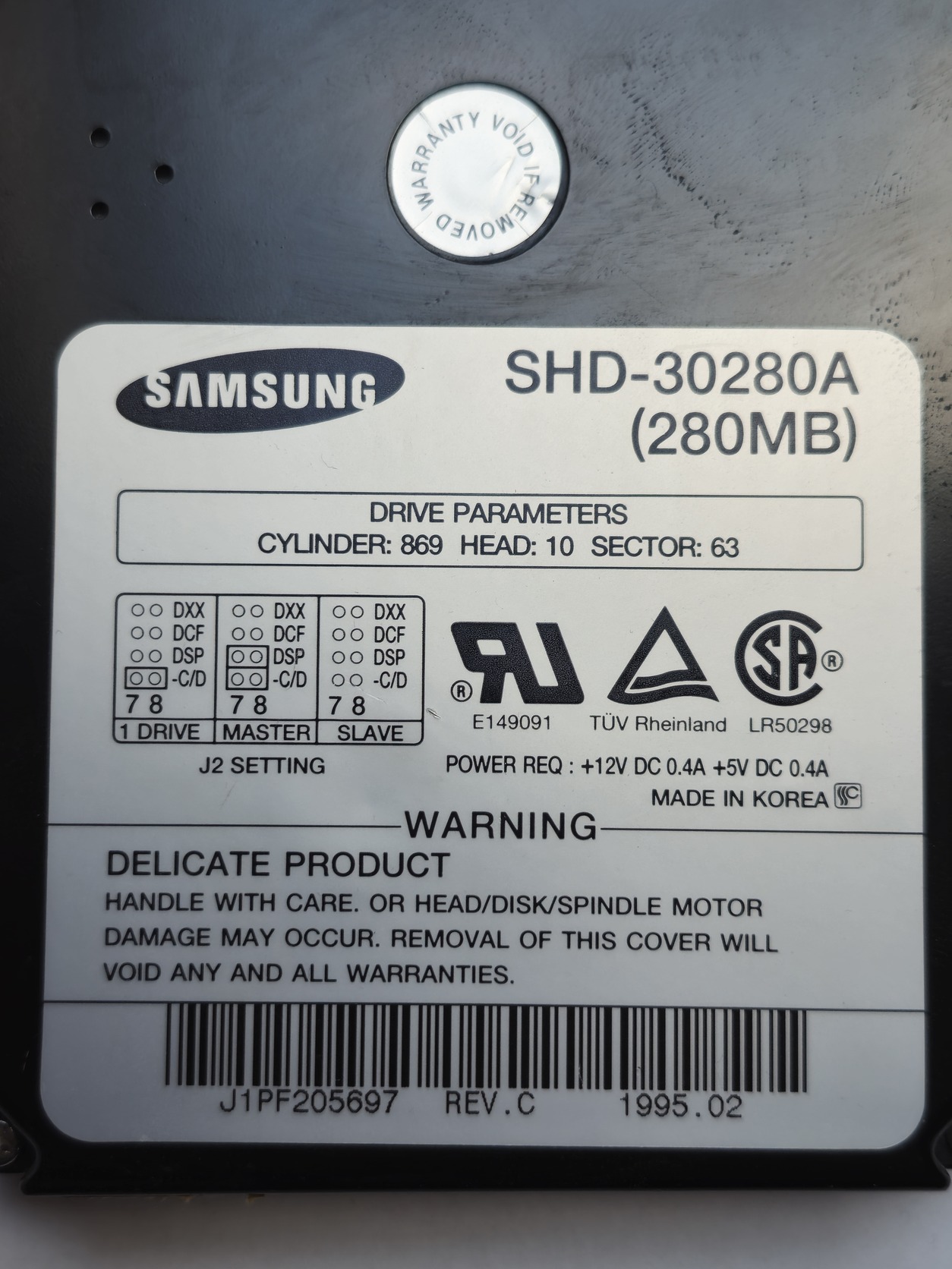 Samsung SHD-30280A 280 MB Retró HDD