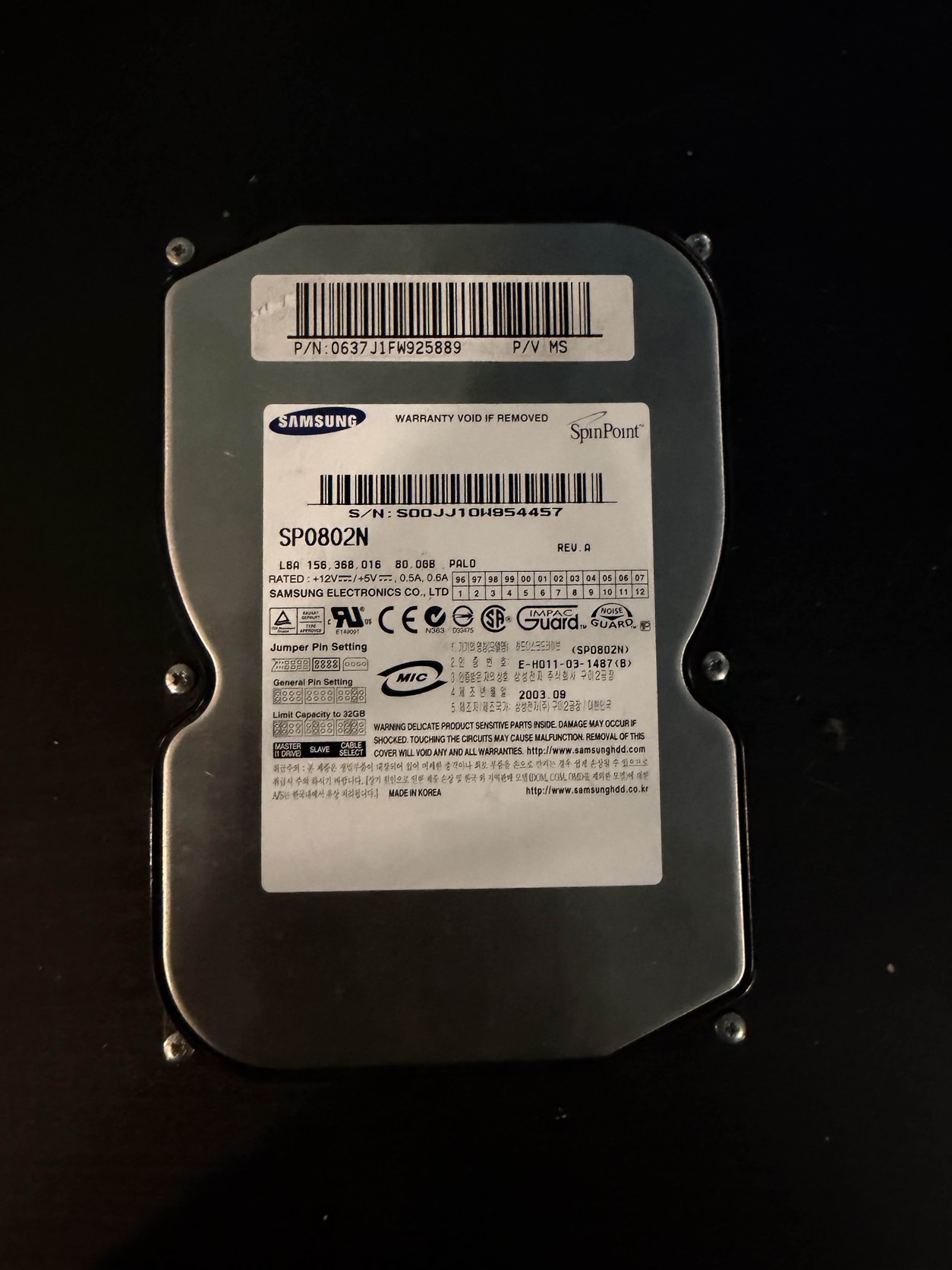 Eladó a képeken látható Samsung SpinPoint SP0802N merevlemez.