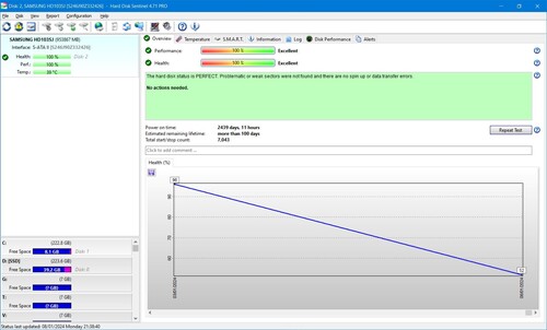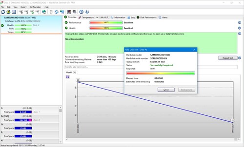 Jelenleg 100/100-as HD sentinel szerint, rövid ön-teszt lefutott hiba nélkül.