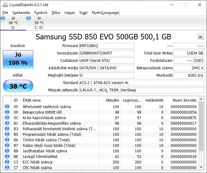 Kihasználatlanság miatt, eladó egy "Samsung SSD 850 EVO 500GB" -os SSD.