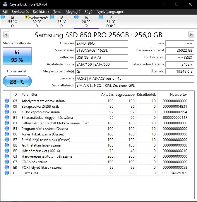 Samsung SSD 850 PRO 256 GB 95%