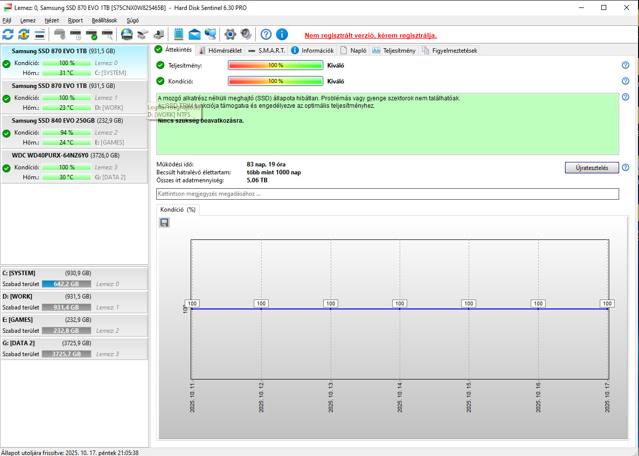 Röviden: A HD Sentinel adatok önmagukért beszélnek. Makulátlan kondícióval és a 100% teljesítménnyel árulom. A Wear Leveling jelei sem mutatkoznak rajta, ezért vállalok rá 1 hónap személyes garanciát.