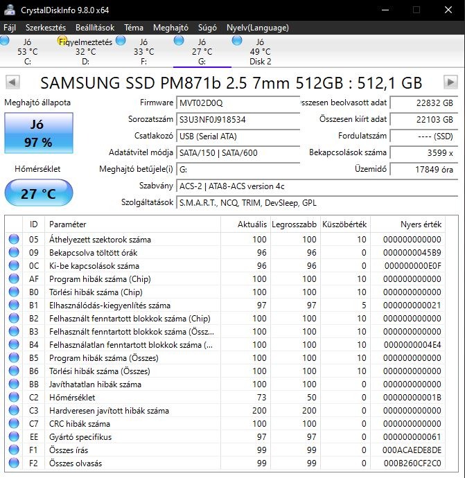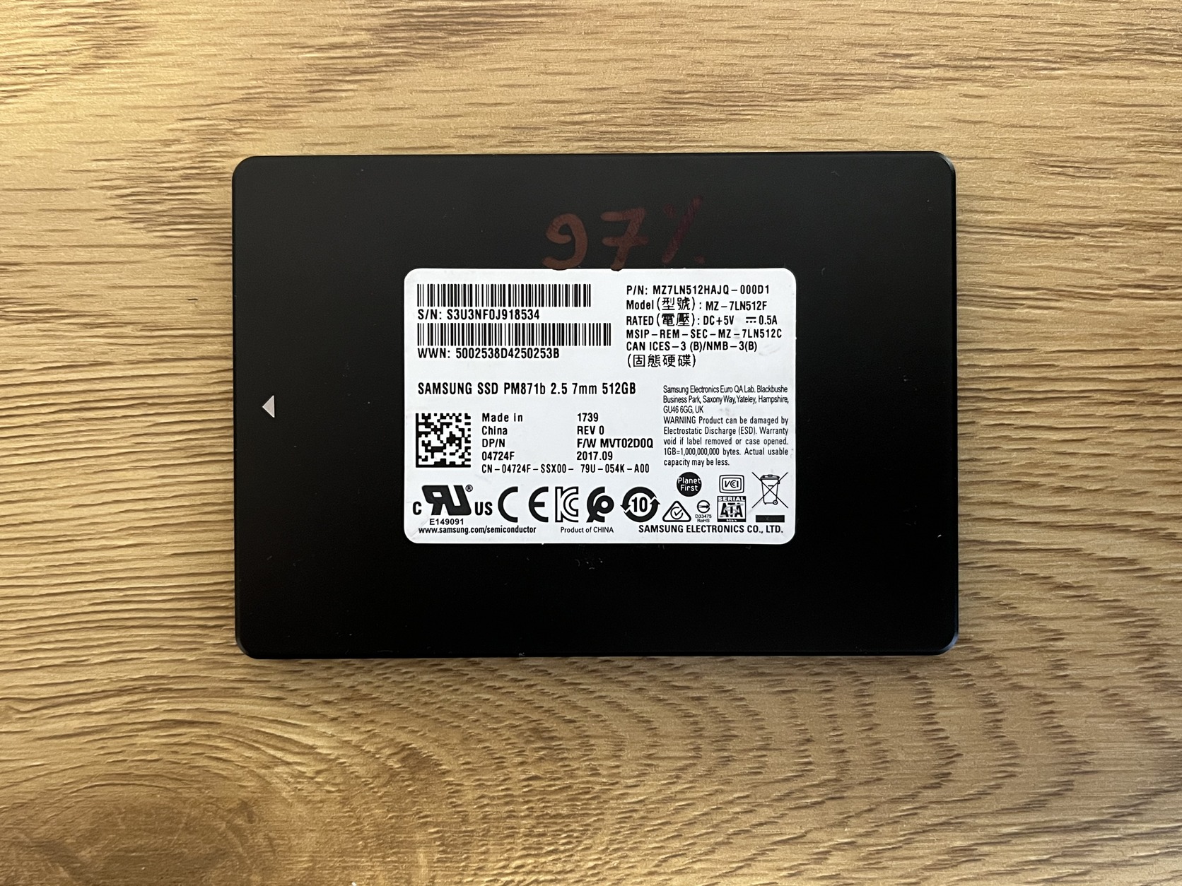 Jegelve – Samsung SSD PM871b 512 GB 97%