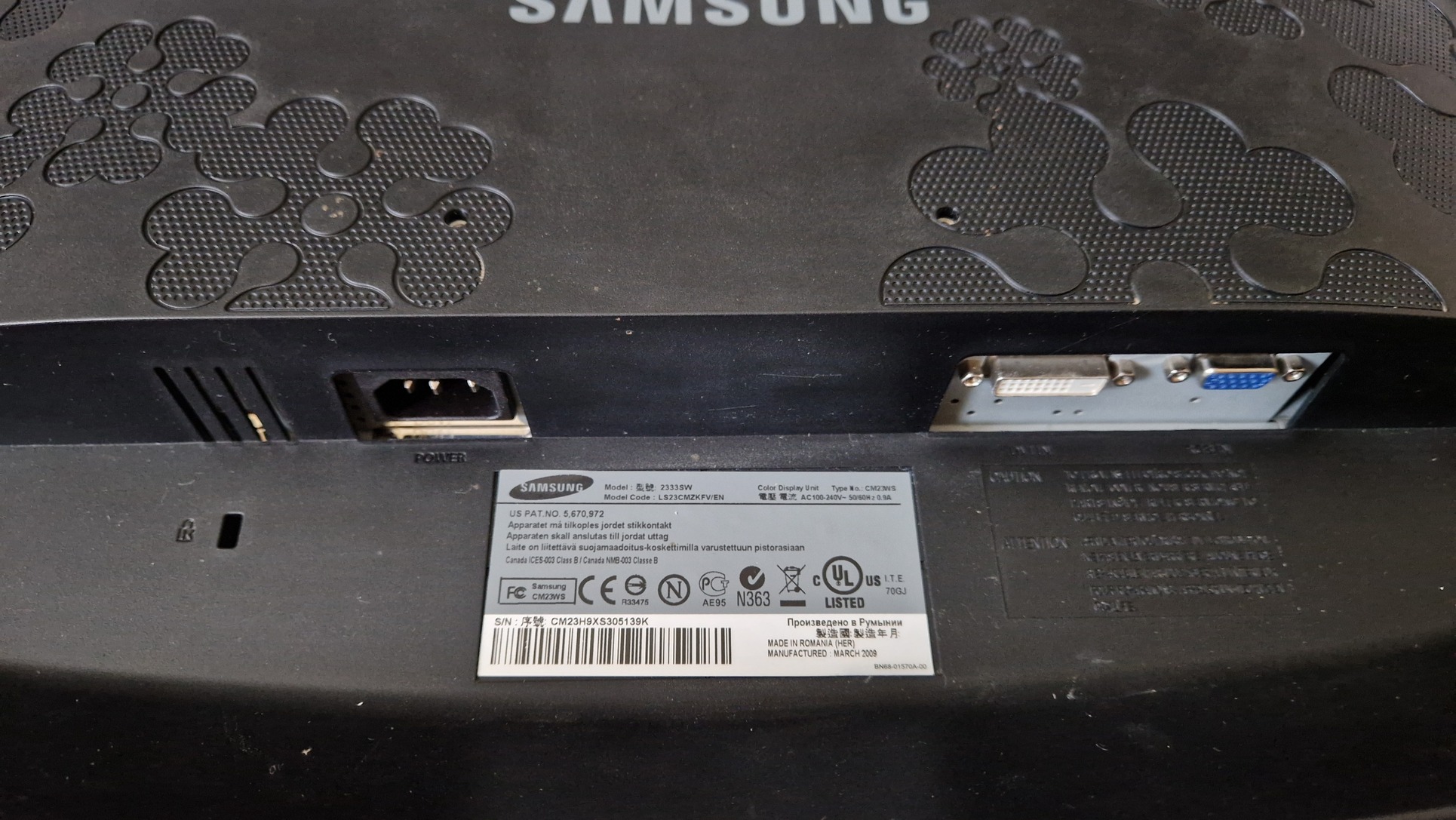 Samsung SyncMaster 2333SW 23" LCD monitor