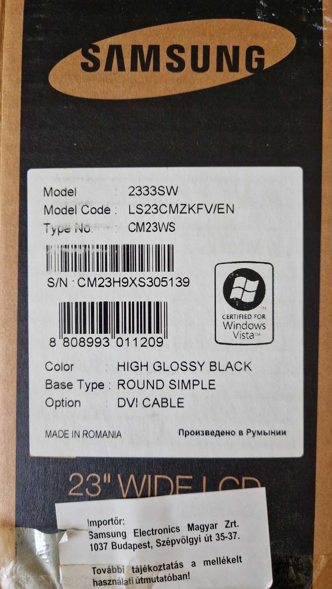 Eladó egy Samsung SyncMaster 2333SW 23" LCD monitor.