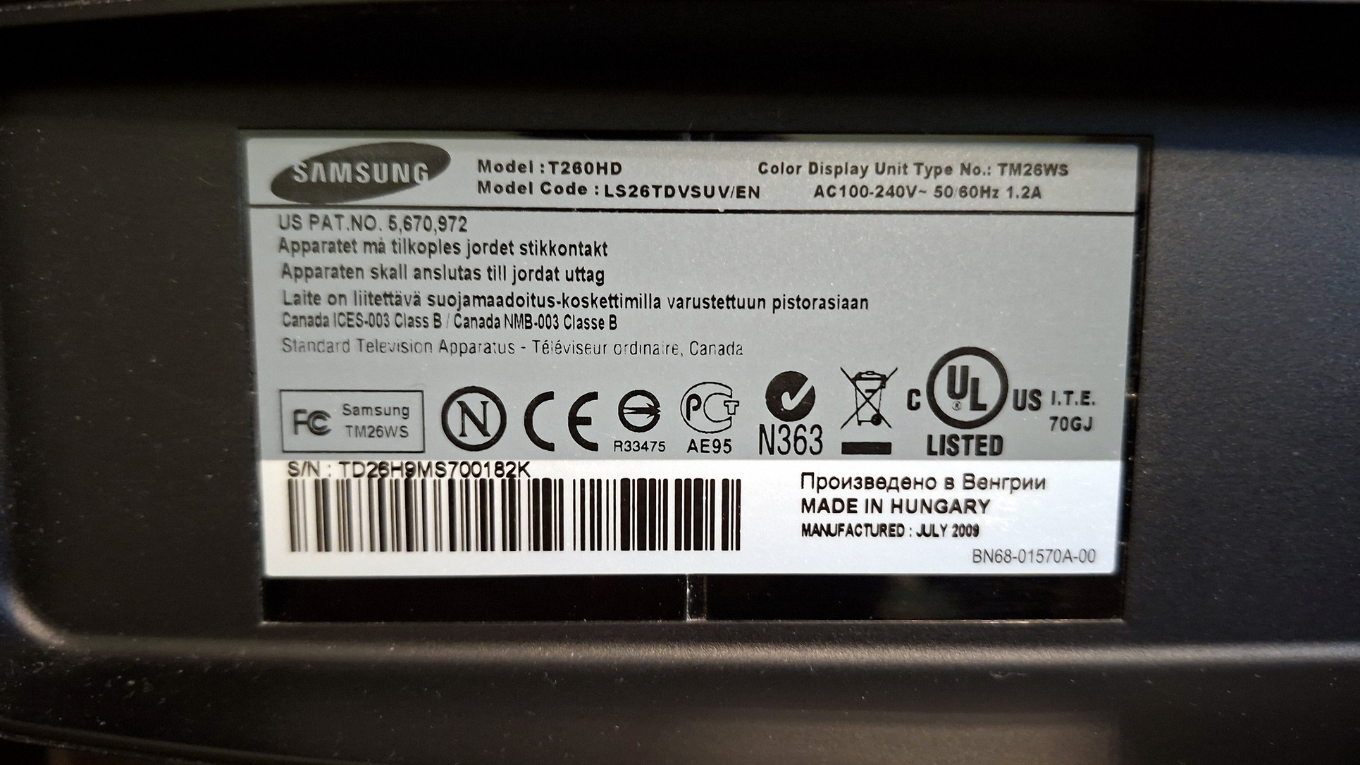 Samsung T260 HD monitor