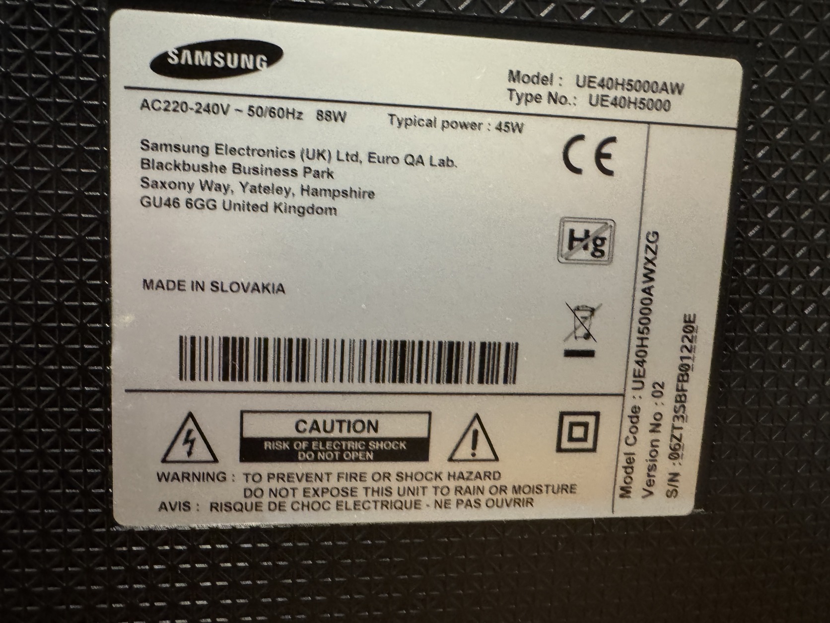 Samsung TV UE40H5000 LCD hibás