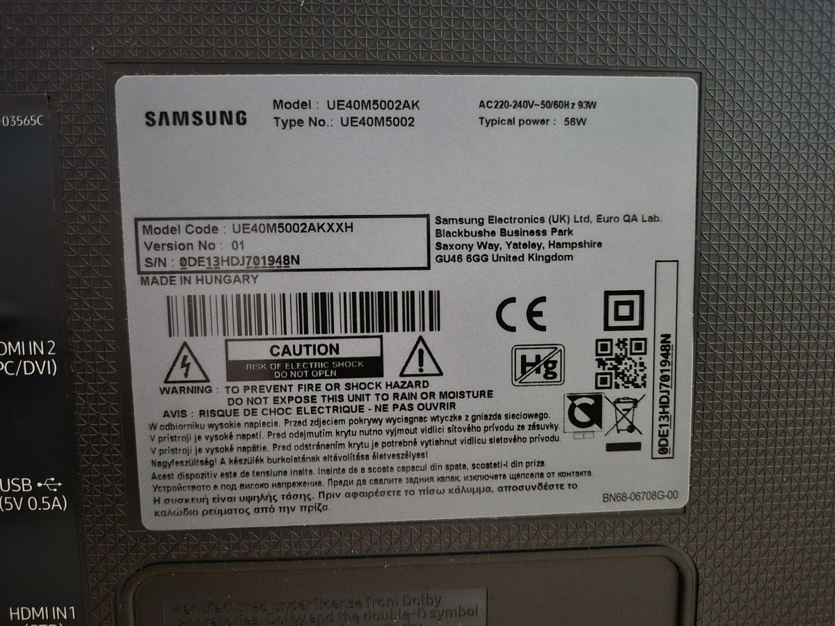 Eladósorba került 1 db 2018-ban vásárolt Samsung UE40M5002 típusú nem okos TV.