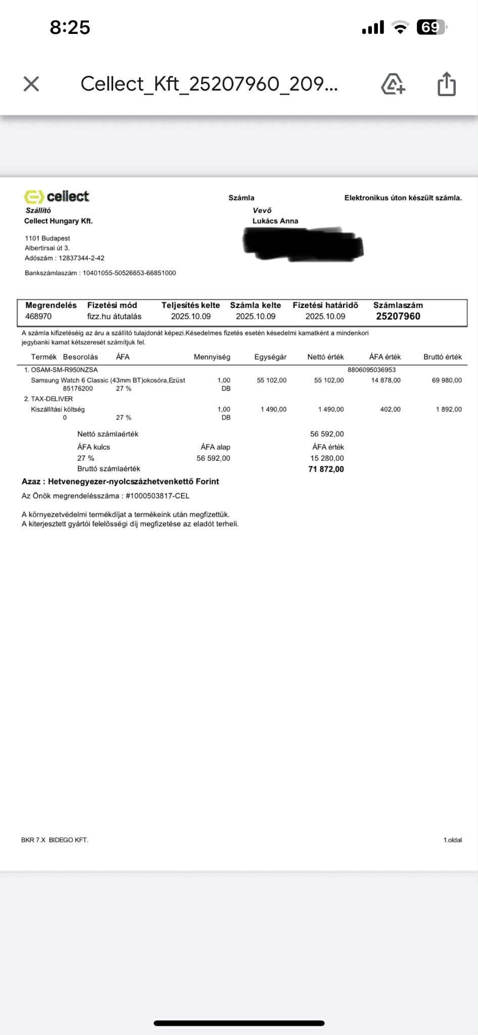 Számlát csatoltam róla, kérésre tudok még képeket küldeni, vagy egyéb infókkal szolgálni!🙂