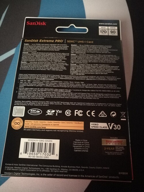 SanDisk 128GB SDXC Extreme PRO 170 MB/s Class 10, U3, V30 // SDSDXXY-128G-GN4IN //