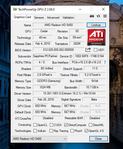 Sapphire HD 5450 1GB