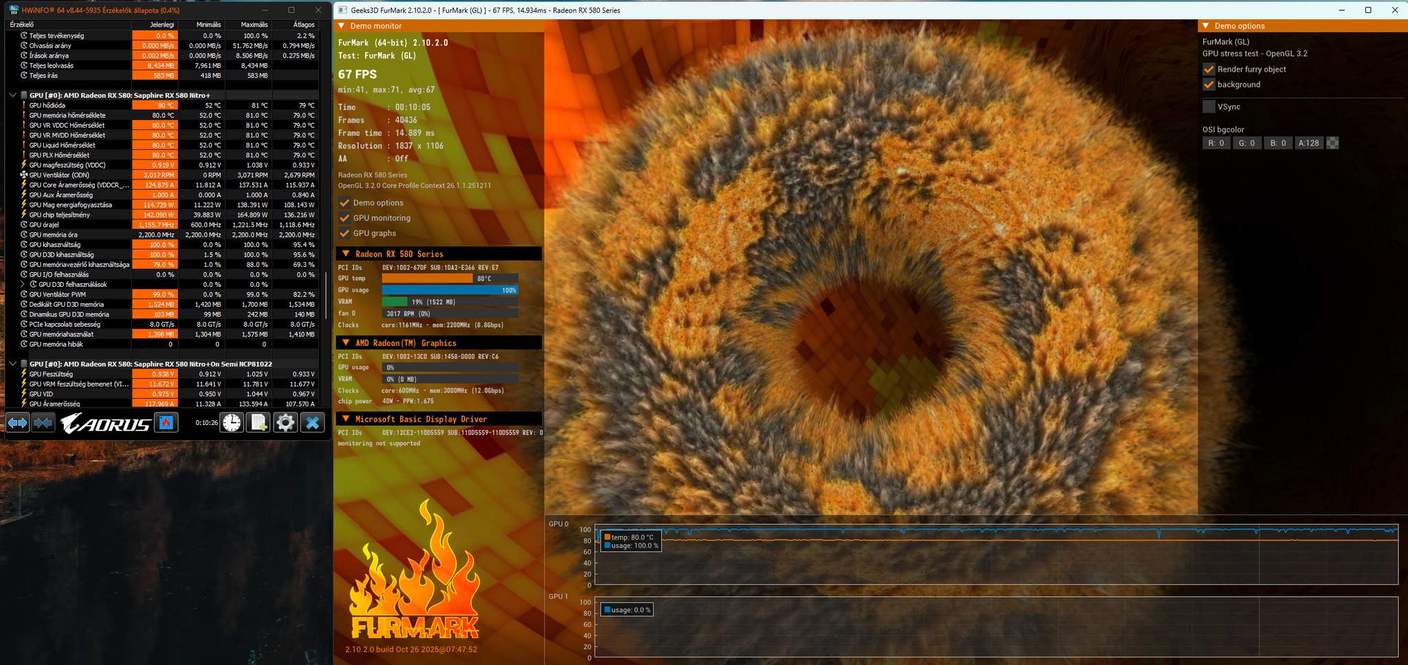 Játékra volt használva, fejlesztés miatt lett cserélve. Tökéletesen működik. Eladás előtt szétszedtem, hűtőbordák tisztítva lettek és újra is lett pasztázva. A képen látható 10 percnyi Furmark-stresszteszt után 80–81 fok között állt meg, természetesen egy realisztikus felhasználás során nem kap ekkora terhelést.
