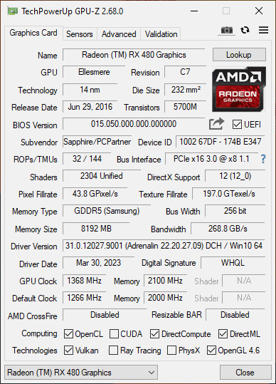 Sapphire Nitro+ RX 480 OC 8GB