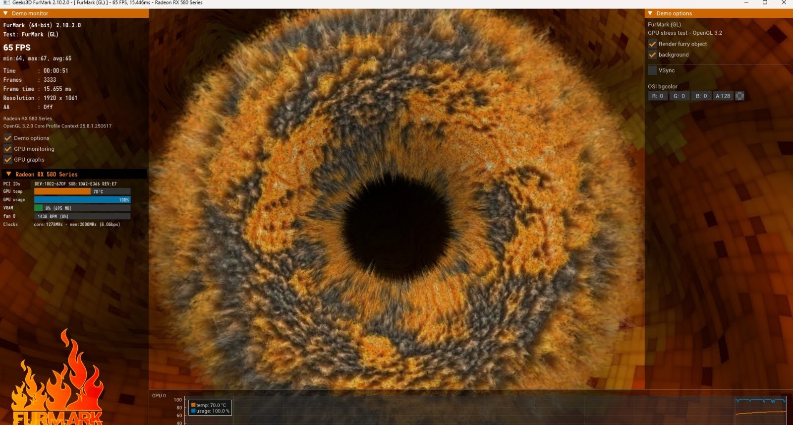 Nitro+ verzió, ami a Sapphire prémium kiadása – jobb hűtés, halkabb működés és stabilabb teljesítmény, mint a sima RX 580-aknál. Maximális terhelés mellett 70 fok főlé sosem ment, jól szellőző gépházban. Furmark-al is teszteltem, lásd a képek között!! Játékra tökéletes, Full HD-ben. Simán viszi a legtöbb játékot. Engem sok évig tökéletesen kiszolgált.