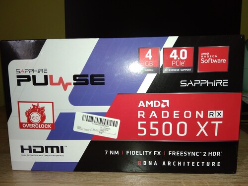 Eladó egy bontatlan Sapphire Pulse OC RX 5500 XT 4GB VGA 3 év garanciával. Teljesítményben egál a 1650 Superrel és kb. 15%-kal marad el a GTX 1660-tól.