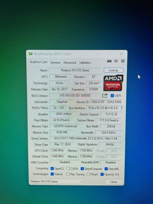 Sapphire Radeon RX570 NITRO+ Gddr5 8GB 256bit