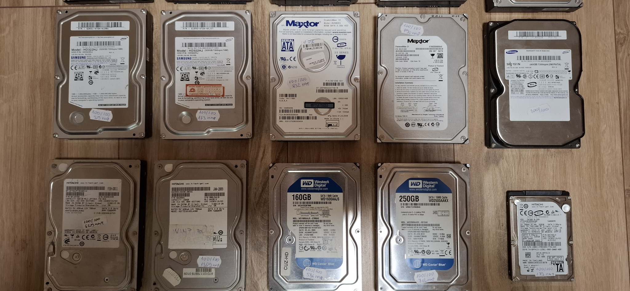 Samsung HD250HJ 250 GB 100/100 100 nap Ára: 2000 Ft.Samsung HD322GJ 320 GB 100/100 289 nap Ára: 2500 Ft.2 db Samsung HD322HJ 320 GB 100/100 39 nap és 163 nap Ára: 2500 Ft./dbSeagate ST3160815AS 160 GB 100/100 783 nap Ára: 1000 Ft.Western Digital WD1600AAJS-07M0A0 160 GB 100/100 586 nap Ára: 1000 Ft.Western Digital WD3200AAKX-073CA1 320 GB 100/100 68 nap Ára: 2500 Ft.Western Digital WD5003ABYZ-011FA0 500 GB 100/100 821 nap Ára: 4000 Ft.Western Digital WD5000AACS-00ZUB0 500 GB 100/100 169 nap Ára: 3500 Ft.Western Digital WD5000AAKX-00U6AA0 500 GB 100/100 280 nap Ára: 3500 Ft.Western Digital WD10EARS-003BB1 1 TB 100/98 (1 hibás és 1 gyenge szektor) 797 nap Ára: 4000 Ft.Western Digital WD10EZRX-00A8LB0 1 TB 100/100 3412 nap Ára: 3000 Ft.Western Digital WD5000AZRX-00A8LB0 500 GB 100/100 1662 nap Ára: 3500 Ft.Western Digital WD3200AAJS-60M0A0 320 GB 100/100 1401 nap Ára: 2500 Ft.