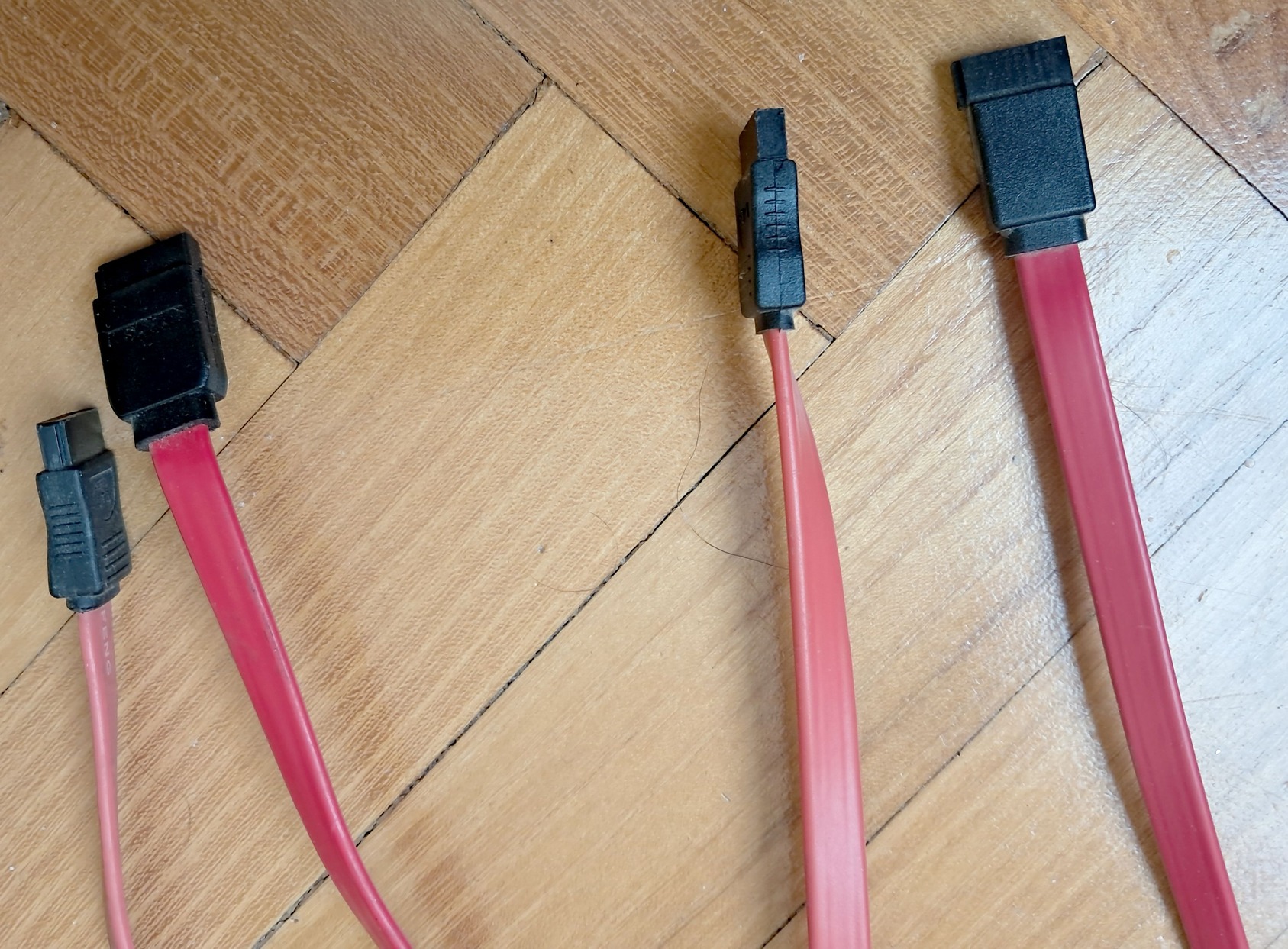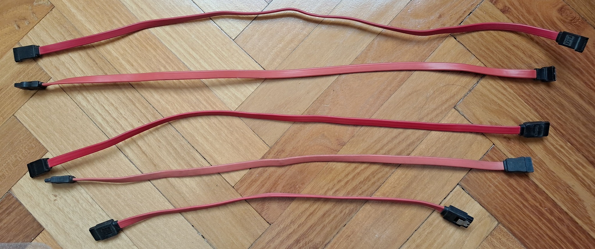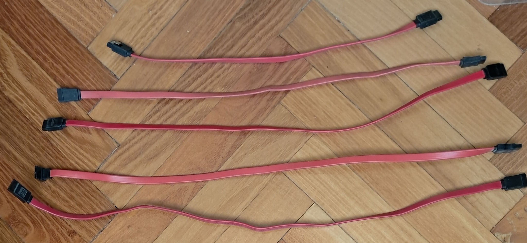 Eladó 7 darab, szinte alig használt SATA kábel. Öt piros + 2 fekete színben. Némelyiknek egyik végén 90 fokos ( derékszögű ) a dugó / csatlakozó van. Nem teszteltem őket, de 99 % hogy működnek, viszont ezt a tényt vegyük figyelembe és nem veszem vissza őket. A hosszúságuk különböző : a 20 cm-től egészen 50 cm-ig. Egyenként is eladóak...