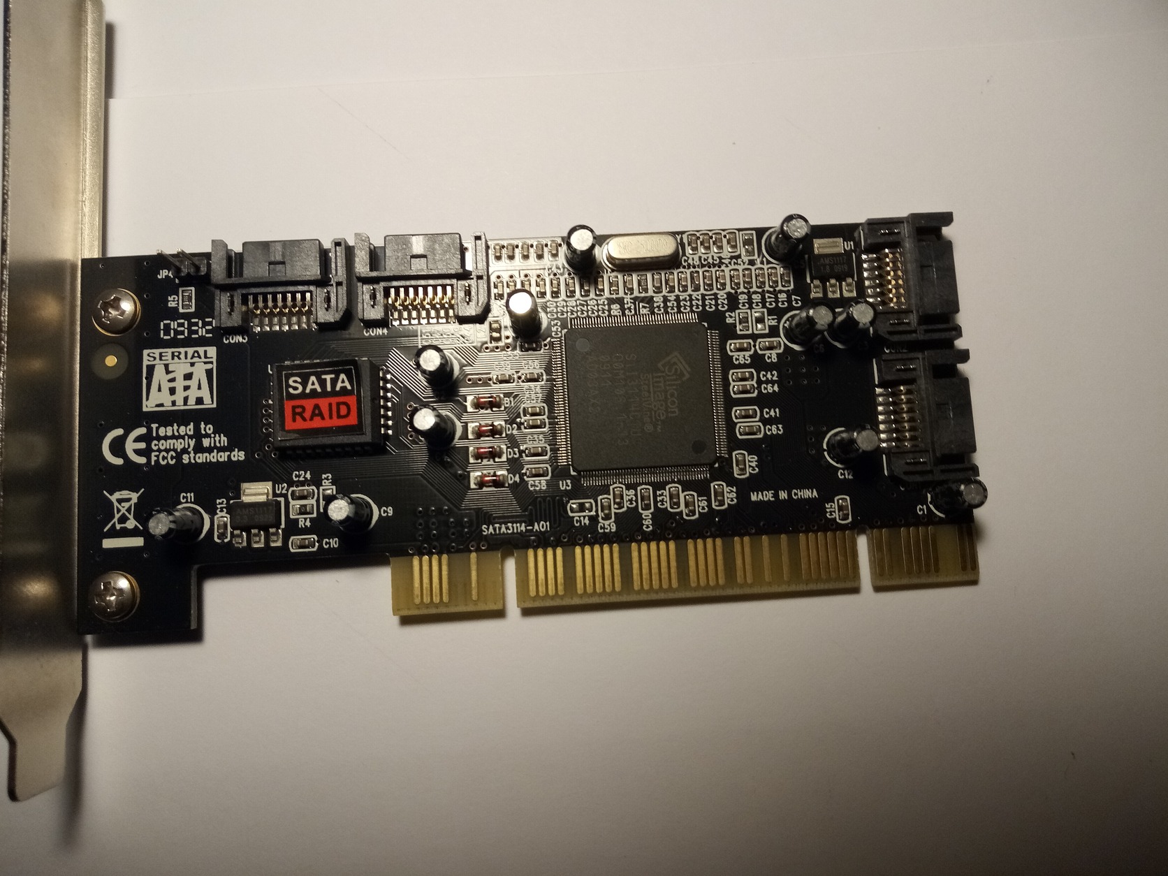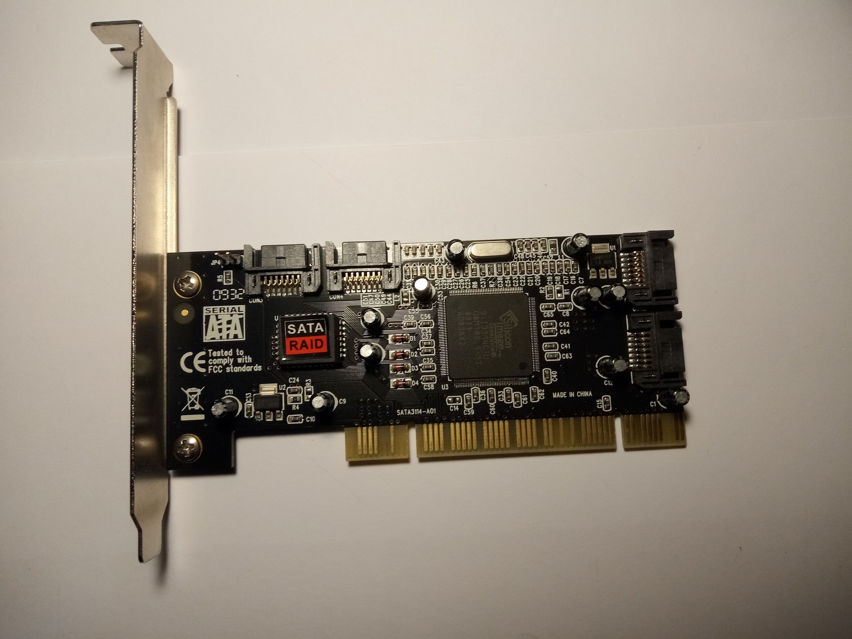Eladó Silicon Image SiI3114 PCI SATA RAID kártya (SATA3114-A01). 4 db SATA I port, RAID 0/1/10/5 támogatás. Tesztelt, hibátlan.