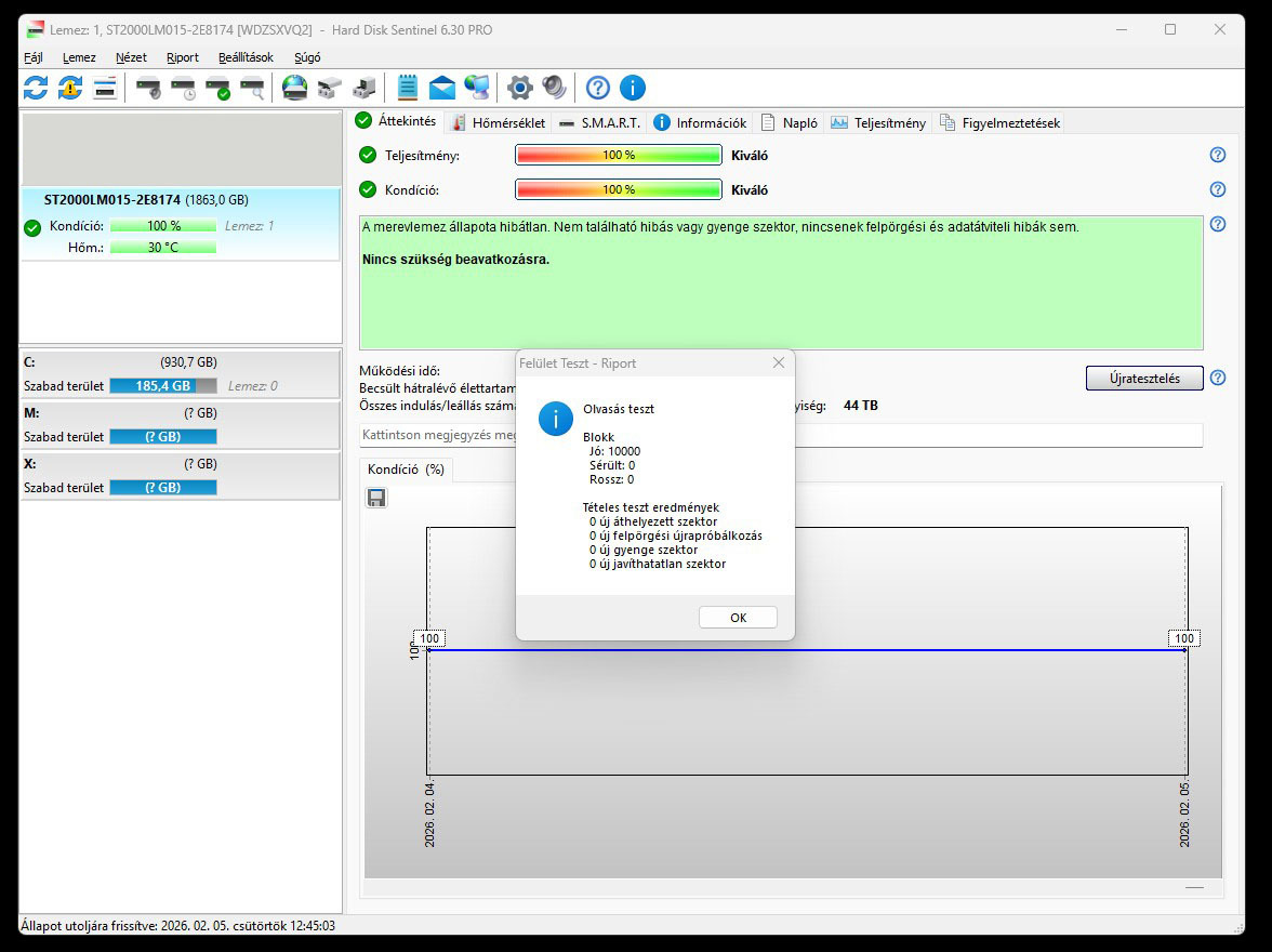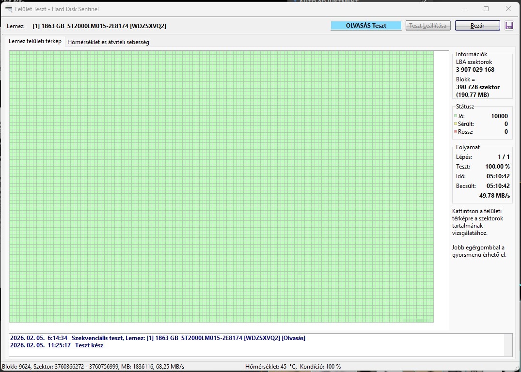 Eladó egy hibátlan HDSentinel 100/100 Seagata Barracuda 2,5" 2TB HDD (ST2000LM015-2E8174).