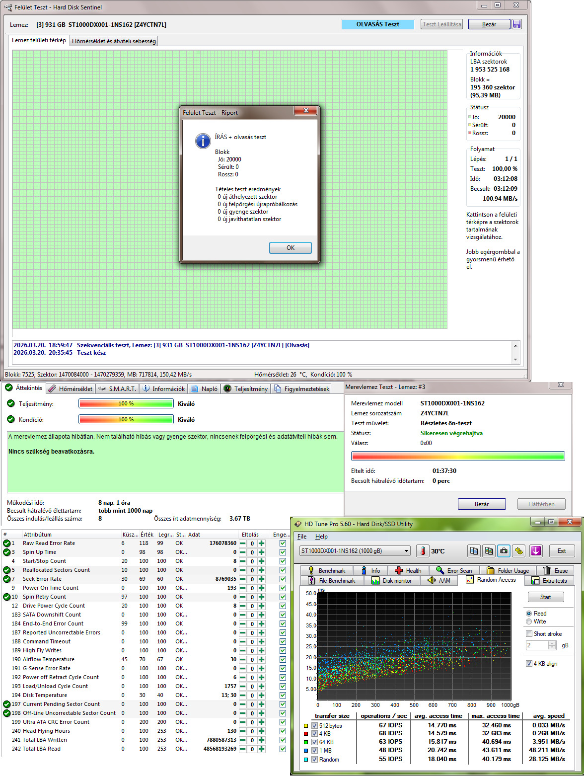 Teljes írás olvasás teszt és hosszú önteszt lefutott.